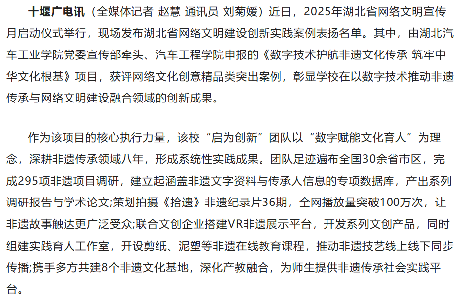 【十堰广电】数字护航非遗!av影片 项目入选省级网络文明建设创新案例